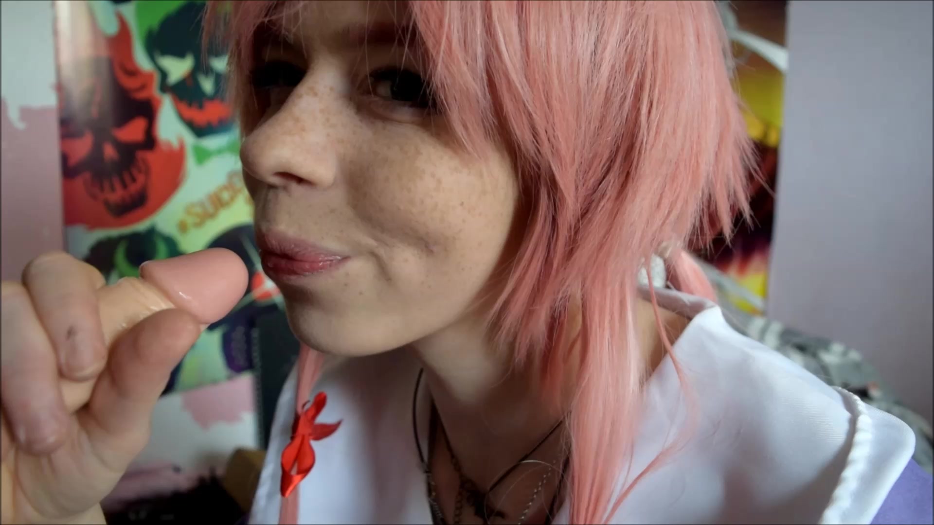 Bat Maisie gorgeous brunette girl passionately sucks dildo