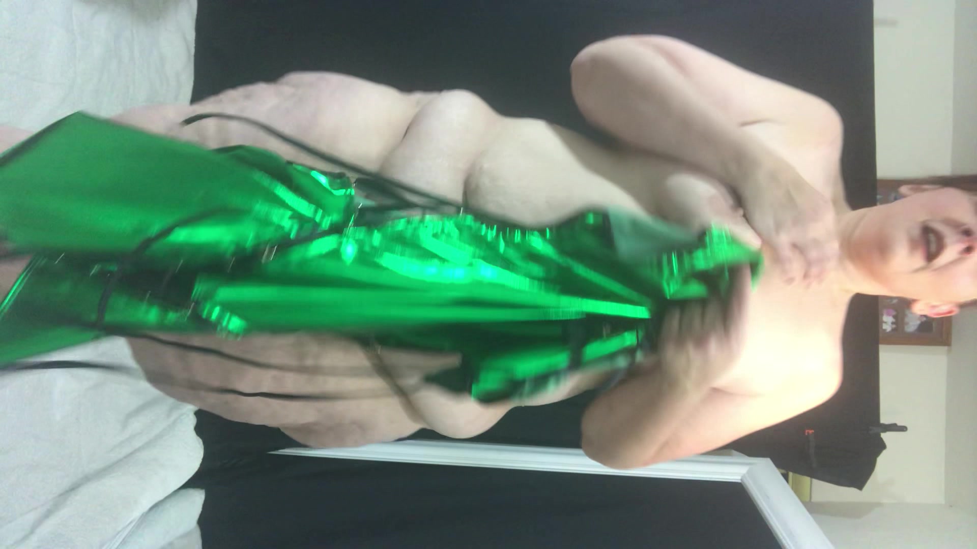 Kourtney Cakes Shiny green lingerie try on