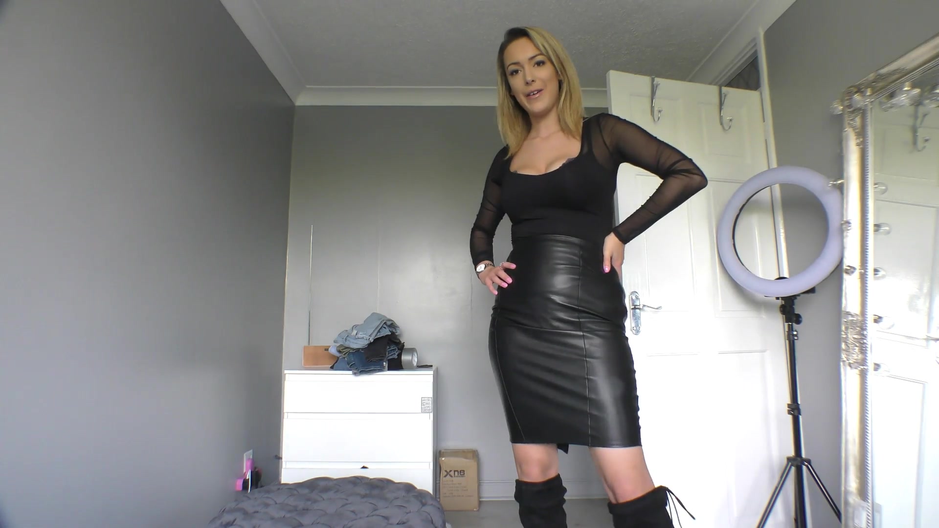 laurenlouise Leather skirt and Boots JOI Laurenlouise ManyVids